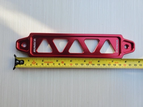 These aluminium battery fastener brackets are a cool & functional way to tidy up your engine bay and secure your car's battery. They are made from billet aluminium and are fairly universal, fitting on most Euro and Japanese car batteries. It will fit all batteries up to a maximum width of 185cm comfortably, as the distance between the bolts on the bracket is 190mm in size.