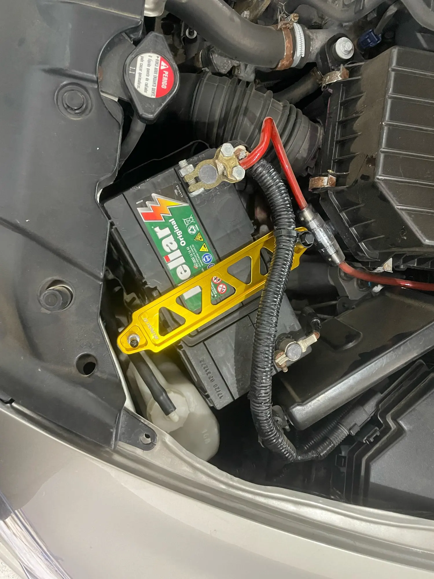 These aluminium battery fastener brackets are a cool & functional way to tidy up your engine bay and secure your car's battery. They are made from billet aluminium and are fairly universal, fitting on most Euro and Japanese car batteries. It will fit all batteries up to a maximum width of 185cm comfortably, as the distance between the bolts on the bracket is 190mm in size.