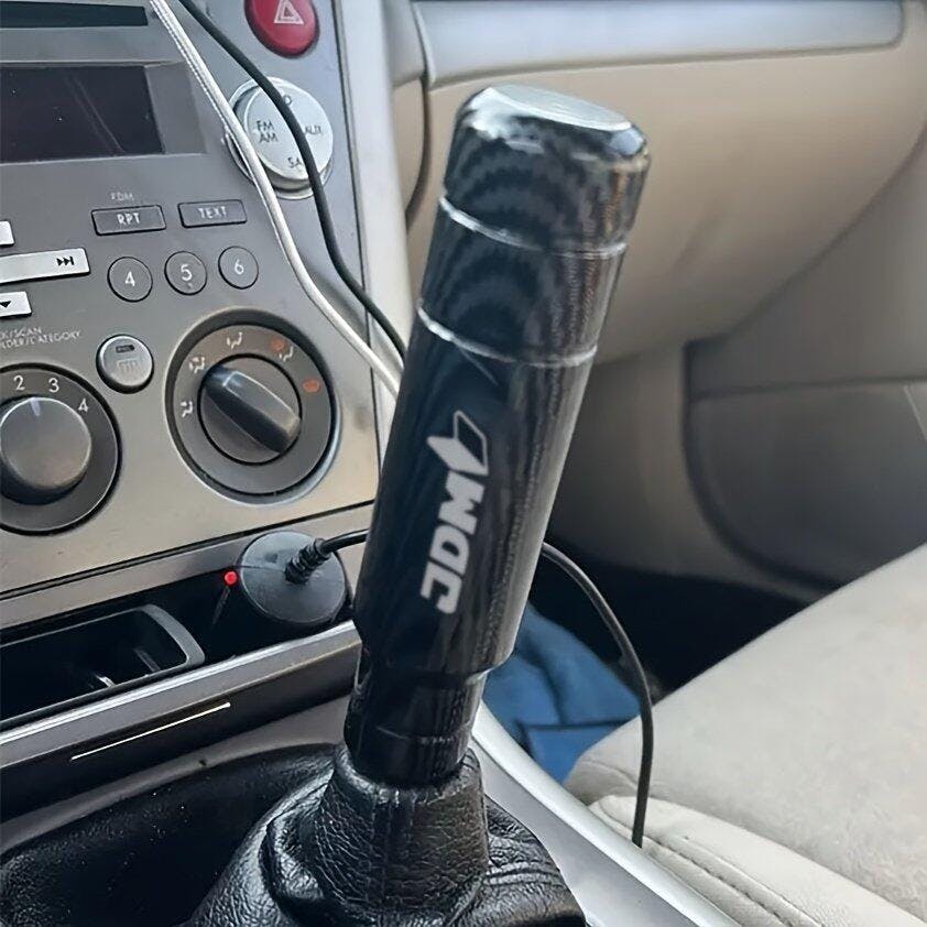 The Carbon Fibre Aluminium Shifter With Thread Adapters is a premium universal gear knob designed for performance and style. Measuring 130mm/13cm and crafted from durable aluminium with a sleek carbon fibre finish, it provides a comfortable grip and an enhanced racing feel.